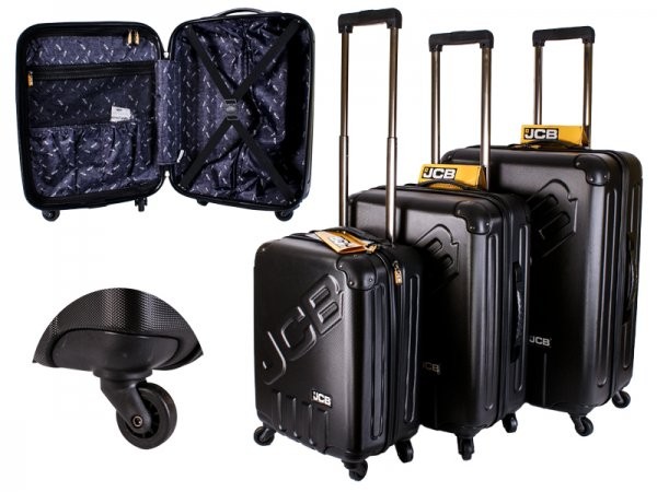 Model: JCB006 Black Shipping Weight: 10.2lbs JCB Set of 3 super-durable 4 wheeled suitcases . Features: The JCB luggage set is manufactured from high-quality durable,pure 80% ABS andPC. Reinforced corners. Top and one side handle Customized High-quality telescopic handle. Fashionable colors for easy identification on the conveyor belt. Quality zippers with ergonomic zipper pullers. Smart and functional interior pockets. PU coated lining with grey padding for easy identification of content. Four strong and high-quality wheels system. Rotates a full 360 degrees. Significantly increases rolling capabilities. Free TSA padlock included Style no: JCB006 Black Barcode: 5055492040466 26″ Dimensions: 66 x 47 x 28.5 cm Packing: 88.5 Ltr Weight: 4.2kg 22″ Dimensions: 56 x 42 x 25 cm Packing: 58.8 Ltr Weight: 3.4kg 20″ Dimensions: 46 x 36 x 21.5 cm Packing: 35.5Ltr Weight: 2.5kg Cabin size, approvet: Easyjet, Ryanair,BA, Virgin,Iata Toal Weight: 10.2kg