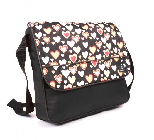 Hearts shaped school bag with velcro flap and adjustable shoulder strap measuring approx 40x30xm