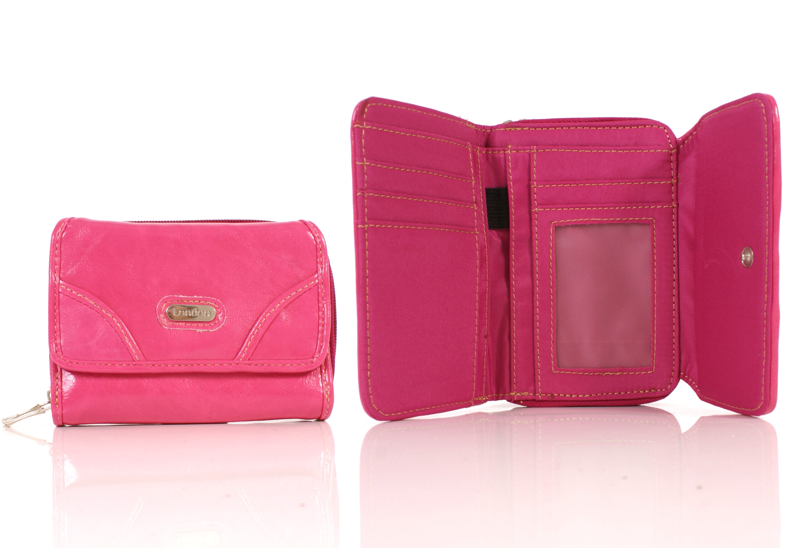PU purse with microfibre interior. Many card slots, a cash compartment, an ID holder and a large concertina zipped purse on the back.