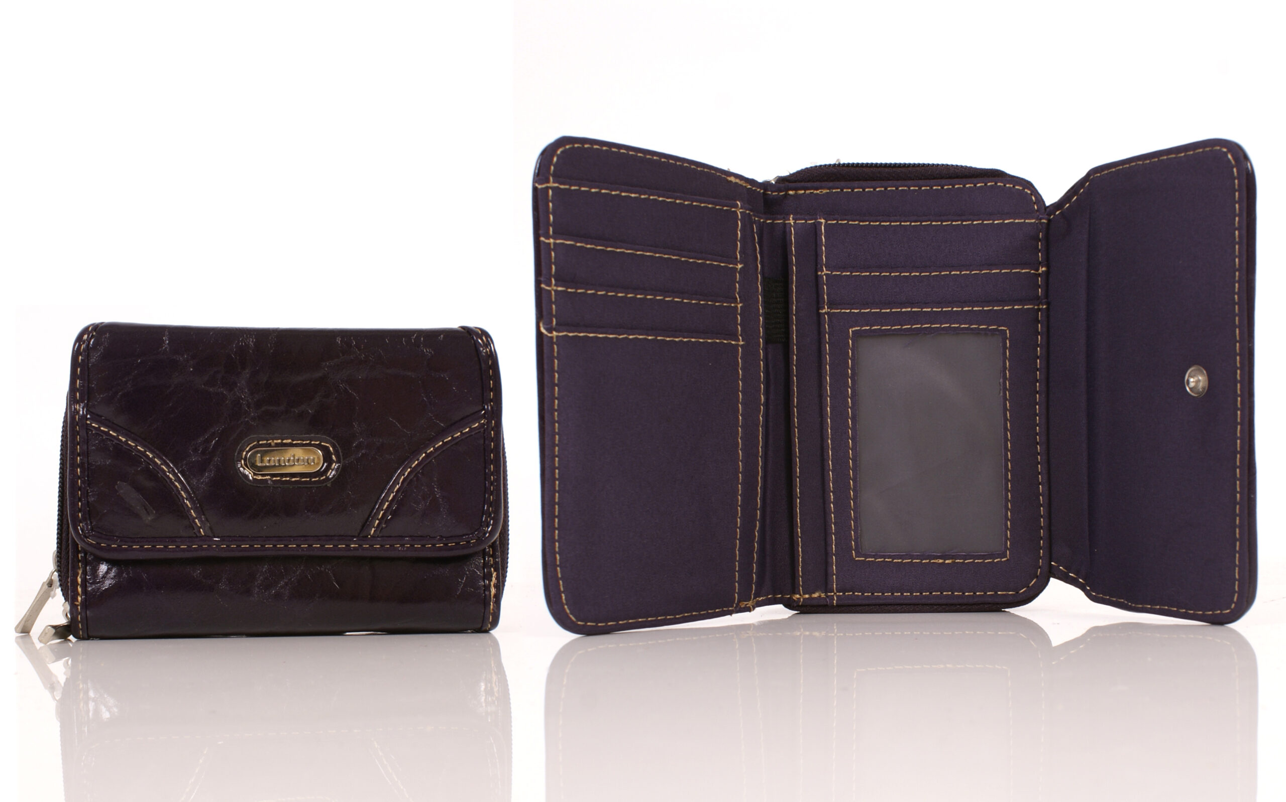 PU purse with microfibre interior. Many card slots, a cash compartment, an ID holder and a large concertina zipped purse on the back.