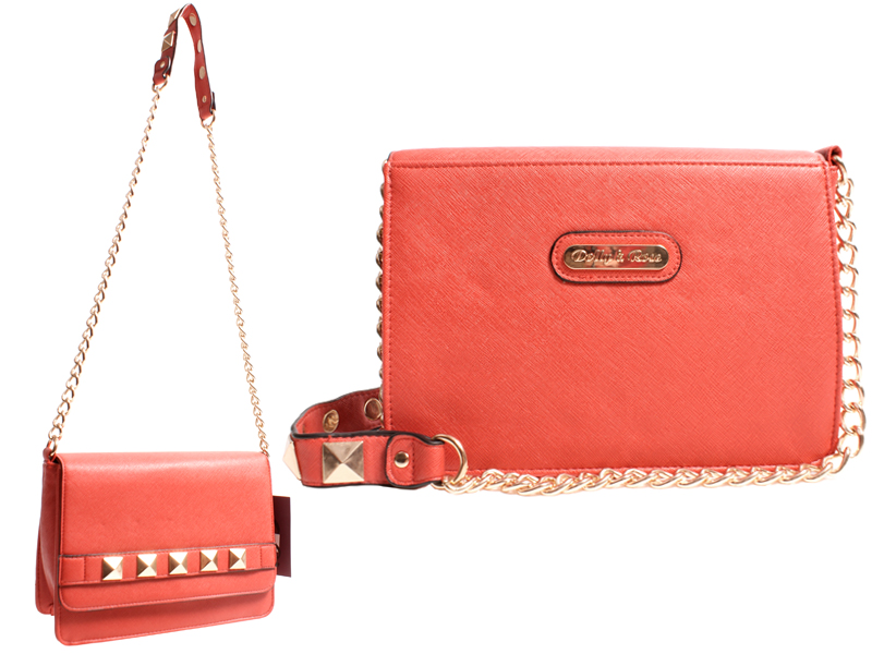 Small Dolly&Rose fashion handbag with stud detail. Features a chained strap and a popper fastening. Also features a small zipped pocket and a mobile phone pouch inside.