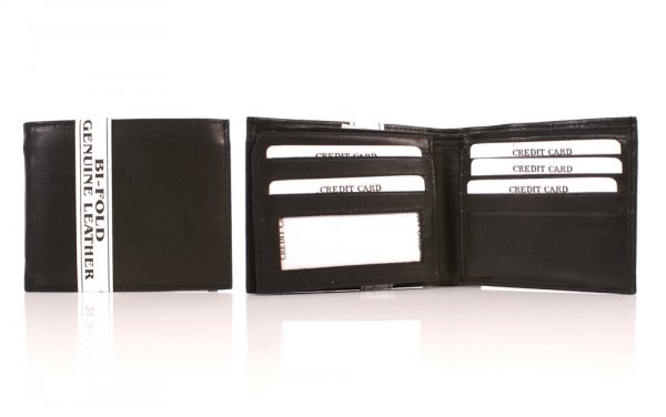 Model: S-083 LEATHER WALLET BLACK Black gents real leather wallet features ID slot, many card slots and a large notes section.