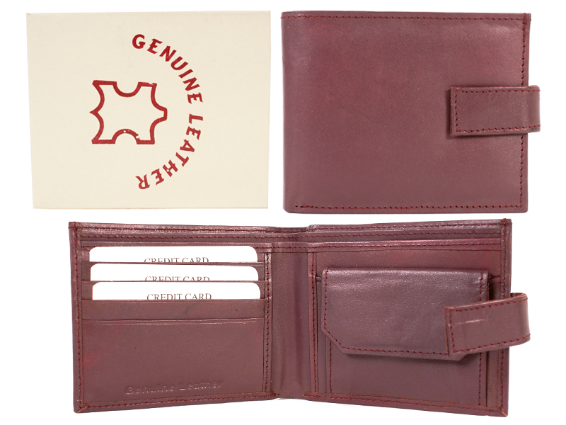 Genuine Leather mens bi-fold wallet with popper fastening. Features multiple card slots, two notes sections and a popper coin section.