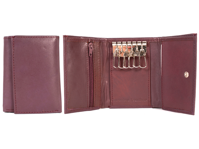 Genuine Leather mens bi-fold wallet with popper fastening. Features few card slots, note section, zip coin pocket and 6 key chains.