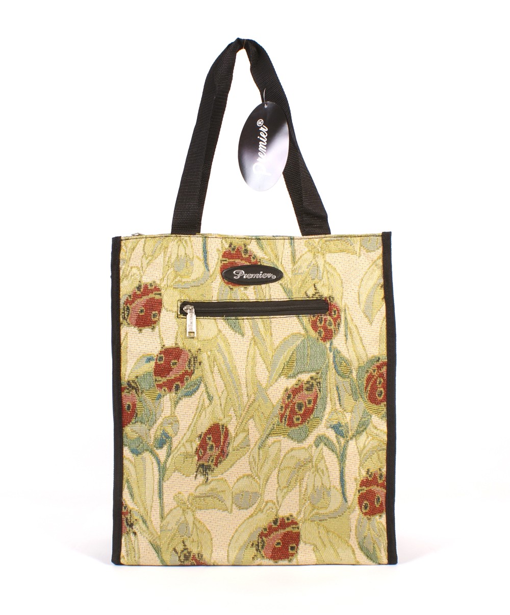 Large Premier patterned handbag/shopping bag. A zipped pocket on the front with a double handle strap and a zipped main entry. Approx 30 cm x 35 cm.
