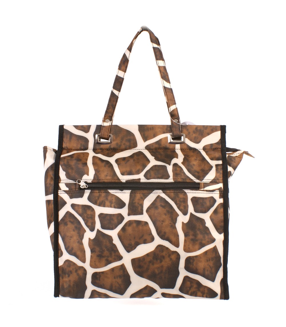 Model: SH-90 LEOPARD Medium size pattern printed shopping bag, main compartment with outer zip pocket. 34 x 34 x 12 cms