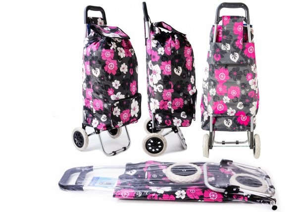 ST-02-FP PINK FLOWER 2 WHEEL SHOPPING TROLLEY