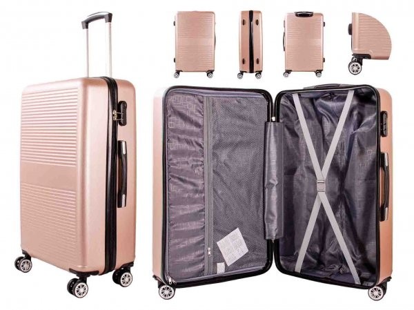 Model: T-HC-06 ROSE GOLD 28” SUITCASE T-HC-06 ROSE GOLD 28” TRAVEL TROLLEY SUITCASE New 4 Wheel 360-degree hard case Suitcase Cabin Trolley -4x 360 DEGREE SPINNER WHEELS -FULLY LINED -LIGHTWEIGHT -PERFECT GLIDE SYSTEM -STRONG AND DURABLE -PUSH-BUTTON TROLLEY SYSTEM -CROSS BELT INTERIOR -SCRATCH-RESISTANT OUTER SHELL -COMBINATION LOCK -Exterior Material Made of 100% strong ABS = Lightweight Yet Durable! -Strong Metal Zippers – Top carry handle for easy grip and easy lifting -One big compartment with buckle locks for holding the clothes. Dimensions :(including Wheels and Fittings): 77cm (28 inches) SIZE: 77X49X29cm (28″X19.3″X11.4″inches) Volume: 95. 4L Weight: 4KGS Barcode – 5053183 072963