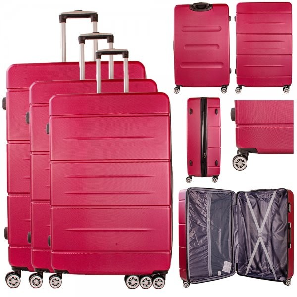 Model: T-HC-LS-01 BURGUNDY SET 3 SUITCS T-HC-LS-01 BURGUNDY SET OF 4 TRAVEL TROLLEY SUITCASES New 4 Wheel 360-degree hard case Suitcase Cabin Trolley -4x 360 DEGREE SPINNER WHEELS -FULLY LINED -LIGHTWEIGHT -PERFECT GLIDE SYSTEM -STRONG AND DURABLE -PUSH-BUTTON TROLLEY SYSTEM -CROSS BELT INTERIOR -SCRATCH-RESISTANT OUTER SHELL -COMBINATION LOCK -Exterior Material Made of 100% strong plastic = Lightweight Yet Durable! -Strong Metal Zippers – Top carry handle for easy grip and easy lifting -One big compartment with buckle locks for holding the clothes. -26” HAVE GOT DETACHABLE WHEELS Dimensions :(including Wheels and Fittings): 77cm (28 inches) SIZE: 77X49X29cm (28″X19.3″X11.4″inches) Volume: 95.4L Weight: 4KGS 73cm (26 inches) SIZE: Size: 62X46X26cm (26″X18.1″X10.2″ inches) Volume:60L Weight: 3.6KGS 57CM (20 inches) Size: 57 X 38.5 X 22cm (20″ X 15.2″ X 8.7″ inches) Volume: 38.5L Weight: 2.6KGS Barcode: 5053183079245 Product 7351/7508