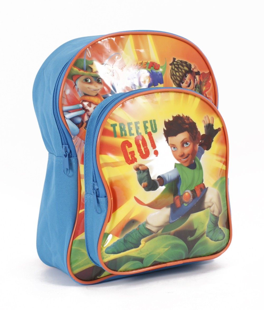 Tree Fu Tom backpack with adjustable shoulder straps with front zipped pocket measuring 30 cm in height.