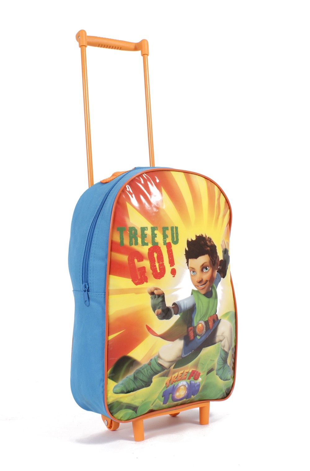 Tree Fu Tom kids wheeled bag with extendable handle measuring 40 cm in height.