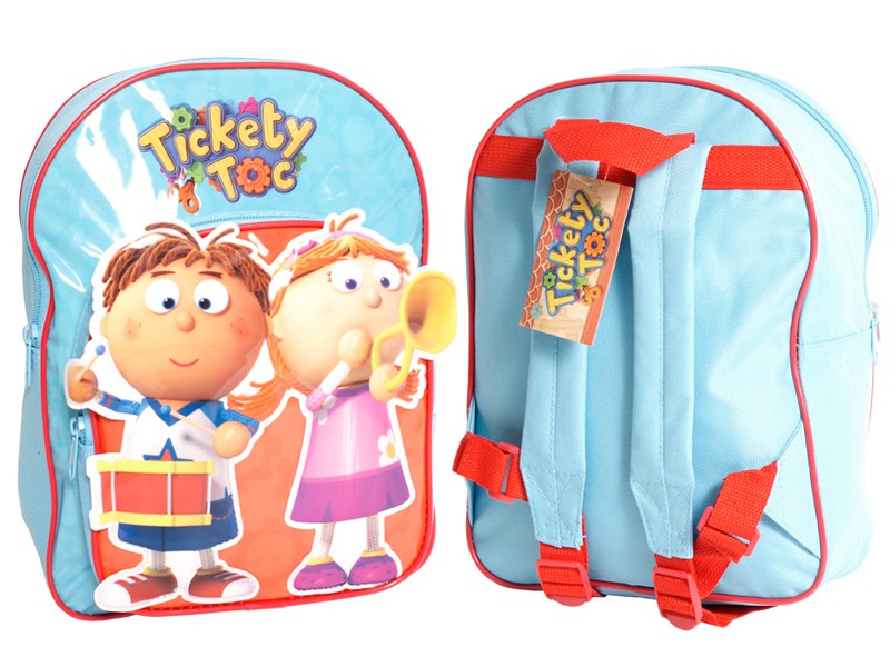 Tickety Toc backpack with 3D element. Features one main zipped compartment, zipped front pocket, adjustable shoulder straps and a top grab handle. Dimensions: Height 30cm Width 24cm Depth 15cm Barcode: 5036278053726